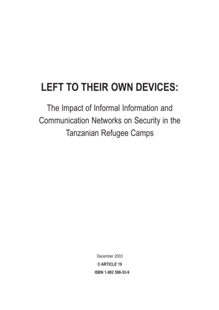 Left on Their Own Devices: The Impact of Informal Information and Communication Networks on Security in the Tanzanian Refugee Camps