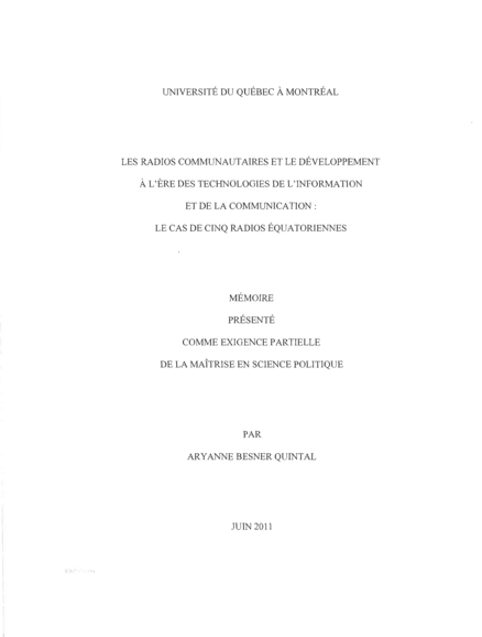 Les radios communautaires et le développement à l'ère des technologies de l'information et de la communication: Le cas de cinq radios équatoriennes
