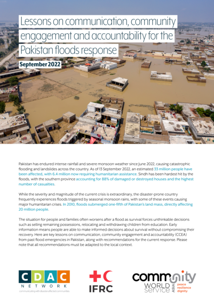 Lessons on Communication, Community Engagement and Accountability for the Pakistan Floods Response
