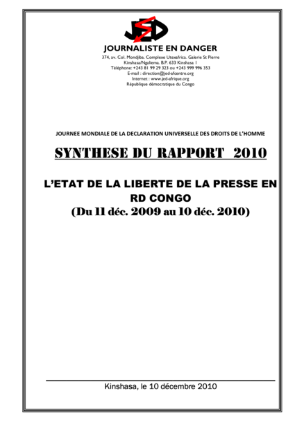 Kinshasa: Journaliste en Danger (JED) (2010), 8 pp.