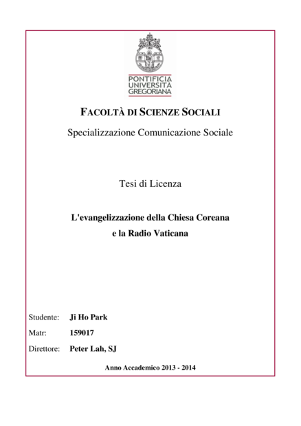 Roma: Tesi di Licenza Specializzazione Comunicazione Sociale Facoltá di Scienze Sociali Pontificia Università Gregoriana (2014), 99 pp.