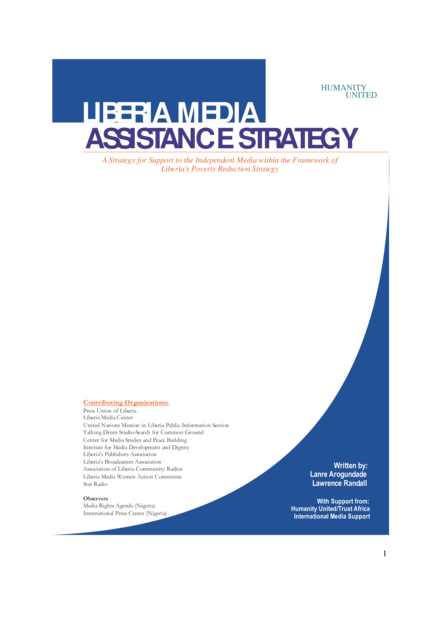 Liberia Media Assistance Strategy: A Strategy for Support to the Independent Media Within the Framework of Liberia's Poverty Reduction Strategy