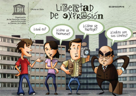 "El cómic consta de 36 páginas ilustradas y tiene por objeto explicar conceptos complejos relacionados con la libertad de expresión en un lenguaje accesible y fácil de entender. Disponible en formato impreso y en línea, el libro está dirigido a jóvenes y adolescentes y se distribuye en escuelas de toda América Latina, con la ayuda de las comisiones nacionales, las escuelas asociadas a la UNESCO y redes de la sociedad civil. El cómic aborda los principios de la libertad de expresión y explica cómo se pueden promover mediante buenas prácticas, como la distribución equitativa de la frecuencia o el establecimiento de organismos reguladores independientes. También explica cómo las malas prácticas, como la censura, la autocensura, la violencia contra los periodistas, los delitos de opinión severamente castigados o los títulos obligatorios y la afiliación a asociaciones profesionales para los periodistas, pueden poner en peligro la libertad de expresión." (Página web de UNESCO, 12/05/2010)