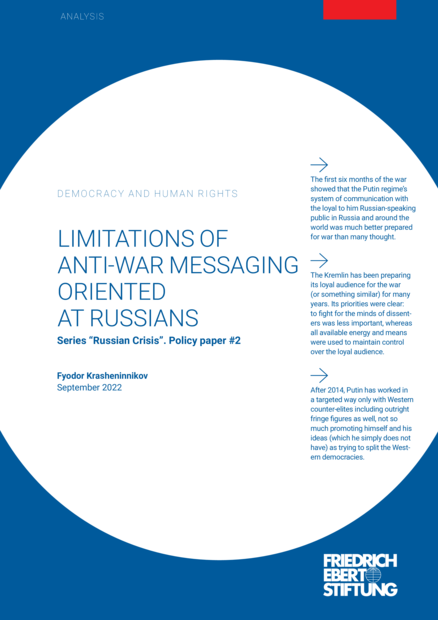 "This paper offers a critical overview of anti-war propaganda in the Russian language during the first six months of the war and identifies the reasons for its limited success. After a review of the challenges to current forms of propaganda, the paper offers practical recommendations to improve the work in this area." (Page 3)