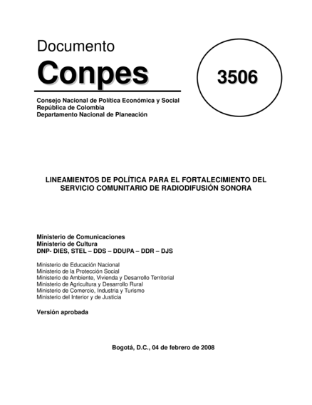 Bogotá: Consejo Nacional de Política Económica y Social (2008), 22 pp.
