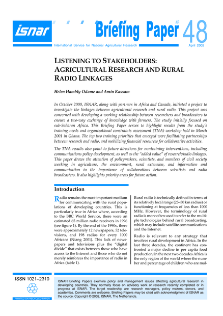 International Service for National Agricultural Research (ISNAR) (2002), 6 pp.