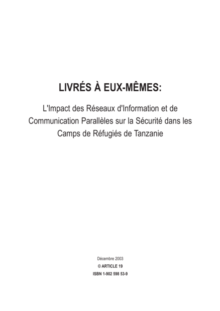 Livrés á eux-mêmes: L'Impact des réseaux d'Information et de communication parallèles sur la sécurité dans les camps de réfugiés de Tanzanie