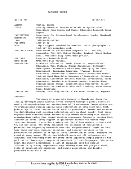 Locally Generated Printed Materials in Agriculture: Experience from Uganda and Ghana
