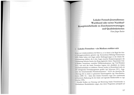 Lokaler Fernsehjournalismus: Wachhund oder netter Nachbar? Rezeptionsbefunde zu Zuschauererwartungen und Qualitätskriterien