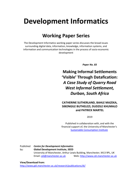 Making Informal Settlements ‘Visible’ Through Datafication: A Case Study of Quarry Road West Informal Settlement, Durban, South Africa