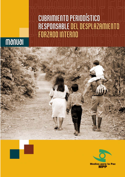 "Medios para la Paz (MPP), con el apoyo técnico de la Organización Internacional para las Migraciones (OIM) y el apoyo financiero de la Agencia de los Estados Unidos para el Desarrollo Internacional (USAID) realizó, en el 2004, ocho talleres para 250 periodistas sobre el cubrimiento informativo de la problemática del desplazamiento forzado interno. Tema al que no se le presta la debida atención en los medios de comunicación y que no suele relacionarse con los procesos de negociación o la solución de los conflictos. Sin embargo, millones de colombianos han padecido las consecuencias concretas del conflicto con la pérdida de sus familiares, sus bienes y del derecho fundamental a permanecer en un sitio o a movilizarse libremente por el país. De los talleres surge el Manual para un Cubrimiento periodístico responsable del desplazamiento forzado interno que presentamos y que busca responder a las necesidades y vacíos profesionales expresados por los colegas participantes." (Presentación, página 7)