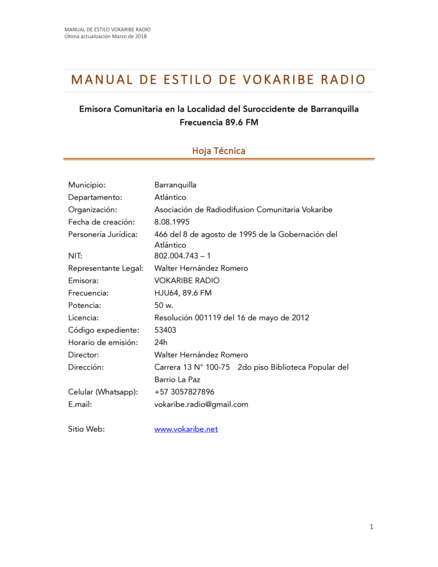 Manual de estilo de Vokaribe Radio