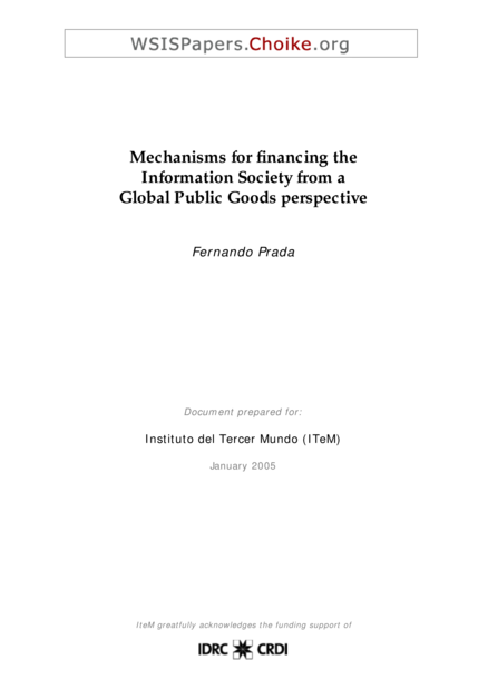 Mechanisms for Financing the Information Society from a Global Public Goods Perspective