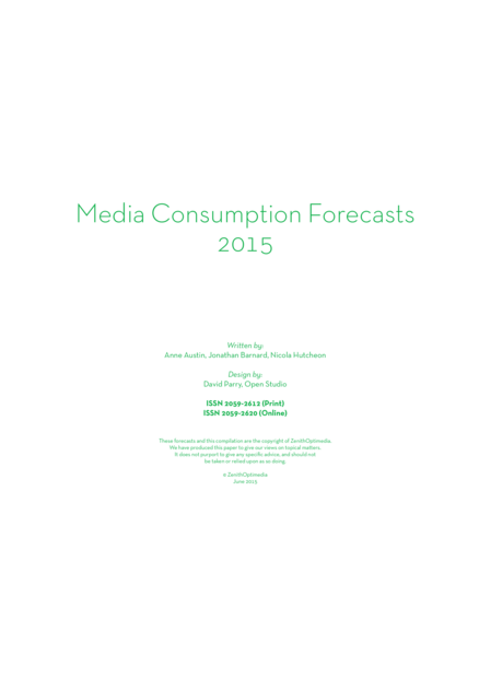 "This report surveys the changing patterns of media consumption in 65 countries across the world, and forecasts how the amount of time people allocate to different media will change between 2014 and 2017. It measures the amount of time spent reading newspapers and magazines, watching television, listening to the radio, visiting the cinema, using the internet, and viewing outdoor advertising while out of the home. Note that the extent of information available varies considerably from market to market. For some countries we have a full breakdown of consumption figures across all media, with separate figures for desktop and mobile internet, with historical figures back to 2010 and forecasts to 2014, plus monthly breakdowns for consumption across the year, and hourly breakdowns for consumption across the day. For a few countries there is very little research on media consumption trends, so we are able to present only a limited set of figures. We expect the scope of the report to expand in future editions, both by adding new countries and by providing more details for countries where information is currently sparse." (Introduction)