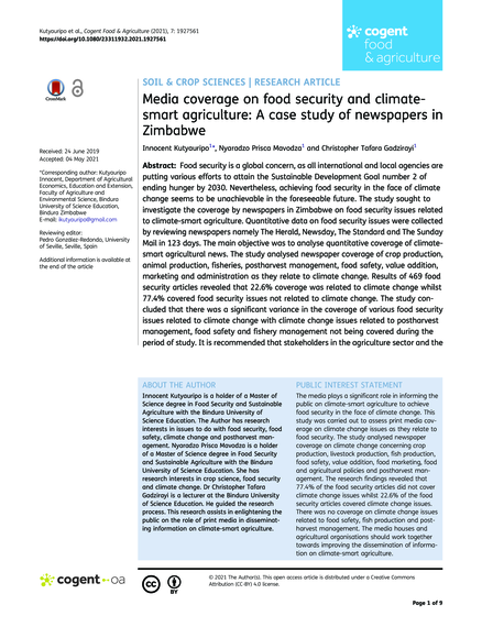 Media Coverage on Food Security and Climate-Smart Agriculture: A Case Study of Newspapers in Zimbabwe