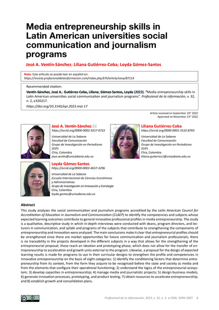 Media Entrepreneurship Skills in Latin American Universities Social Communication and Journalism Programs