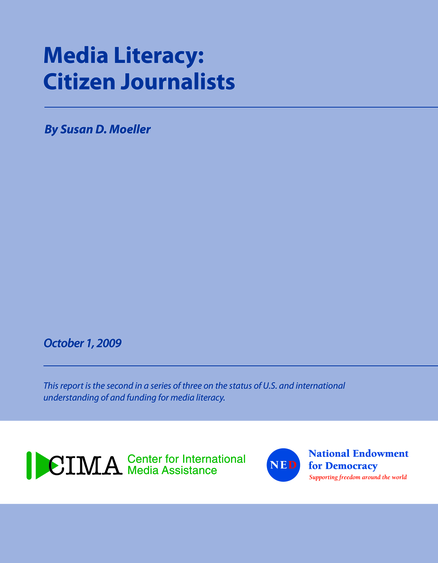 "In environments where poor infrastructure, minimal access to technology, and small-scale economies impede the creation or sustainability of mainstream independent media, and in countries where repressive governments limit the ability of professional journalists to operate freely, citizen journalists are filling the gaps. Yet citizen journalists often have no formal journalism training nor - perhaps more critically - any training in the essential roles independent media play in ensuring accountable and transparent government. This report investigates how the U.S. government, international institutions, and private foundations are trying to teach this new cohort of semi-journalists to be media literate." (Executive summary)