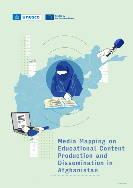 "Within the complex media and educational landscape of Afghanistan, characterized by the takeover by the de facto authorities, a study of the current Media-Based education was facilitated by the Afghanistan Independent Journalists Union (AIJU) and Integrity Watch Afghanistan (IWA) with the support of UNESCO. The study aims to understand the current media landscape in the country particularly the creation and distribution of educational content. It has the objective of assessing the current context of consumption of educational content published on different media platforms, with a special focus on their accessibility and relevance for the communities, mapping the broadcast and digital learning environment within the country and of evaluating the needs of the communities. Aligned with UNESCO’s mission to promote freedom of expression and education, this research investigates the potential of media to provide alternative opportunities and tools for learning. The resulting report “Media Mapping on Educational Content Production and Dissemination in Afghanistan” provides narratives and perspectives of those working in the media sector, including media managers, who are working under very challenging conditions. It reflects the communities’ experiences, including those of girls - who face significant barriers and restrictions in accessing traditional educational opportunities. The report provides valuable insights into the opportunities and obstacles for Media-Based education within the Afghan media sphere. The detailed findings aim to guide stakeholders and present actionable insights that seek to enhance the work of the media sector in facilitating access to education in the current environment of Afghanistan." (Back cover)