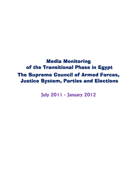 Media Monitoring of the Transitional Phase in Egypt: The Supreme Council of Armed Forces, Justice System, Parties and Elections, July 2011 - January 2012