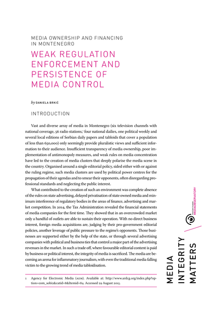 Media Ownership and Financing in Montenegro: Weak Regulation Enforcement and Persistence of Media Control