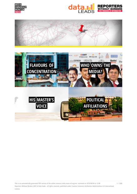 "The Media Ownership Monitor – India finds out that while the ownership of media seems fairly plural at the national level, it is highly concentrated when one zooms into the regional level. More importantly, prominent national players have ceded their position of eminence at the regional level, where local players rule." (http://india.mom-rsf.org/en)
