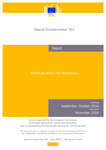 "The results of this survey paint a mixed picture of media pluralism and freedom across the European Union. On the positive side, the majority of respondents think their national media provide a diversity of views and opinions. Furthermore, the majority in each Member State think this is the case. Most respondents also think the level of diversity is either the same as, or more than the level of five years ago. A small majority agree national media provide trustworthy information. However, in spite of the diversity of the media, the majority of respondents say neither their national or their public service media are free and independent. Furthermore, almost three in ten think their national media are less free and independent than they were five years ago. Media independence and trust in the information provided by the media often go hand in hand. In many countries, when a high proportion of respondents think their national media are free from political and commercial pressures, there are also high proportions of respondents who think the media provides trustworthy information. For example, this is the case in Finland, Denmark, Sweden and the Netherlands. The reverse is also true. In France, Greece, and Spain, for instance, respondents are much less likely to think their national media are free from political and commercial pressures, and they are much less likely to consider the national media provides trustworthy information. While all Member States have a body to regulate audiovisual media, just over one in five know their country’s media regulator. Furthermore, only a minority believe their media regulator is free and independent from political, governmental or commercial pressures. Just over half of respondents follow debates on social media by reading articles on the Internet, or through blogs or other social media. Less than three in ten actively participate in them by posting comments and so on. For those who do participate, it is more likely to be an occasional rather than a regular occurrence." (Conclusions)