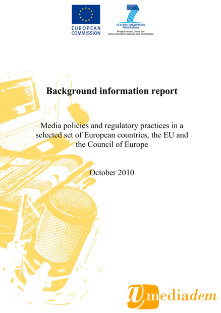 "This collective report examines the principal dimensions of media policy in 14 European countries (Belgium, Bulgaria, Croatia, Denmark, Estonia, Finland, Germany, Greece, Italy, Romania, Slovakia, Spain, Turkey and the UK), probing into the historical forces, national traditions and distinct political and socio-economic contexts in which media policies have emerged and developed. The analysis explores the main instruments for media regulation in the countries under study, and assesses the implications of the established media policy strategies for democratic politics. The country chapters follow a similar structure. Following a brief introduction, the analysis focuses on the media landscape of the countries under review, offering an overview of the national media market (the press, broadcast media, online media and news agencies), as well as a discussion of the status of the journalistic profession and media literacy. The third section presents the major actors involved in media policymaking and proceeds with a succinct presentation and explanation of the national regulatory framework for the media, focusing mainly on structural and content regulation. The final section provides a critical assessment of the principal issues and trends that characterise the media policies of the countries under study, together with an assessment of the degree to which they enable the media to feed the democratic process. The report also contains a chapter discussing the media-related initiatives of the European Union and the Council of Europe, focusing on the interventions that are of relevance and importance to the protection and promotion of media freedom and independence." (Introductory note, page 10)
