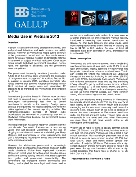 "Vietnamese are avid news consumers; nine in 10 (89.8%) say they access news at least daily, while 93.9% do so at least once a week. Weekly access to TV news varies little by gender, education or urban vs. rural residence. This in part reflects the finding that televisions are ubiquitous throughout the country, including in both urban (98.6%) and rural (97.0%) households. Even among Vietnamese with no formal education or those who say they are finding it “very difficult” to get by on their current income, at least nine in 10 have a TV in their homes (96.0% and 90.4%, respectively). By contrast, radio and computer ownership, as well as home Internet access, are more common among Vietnamese at higher socioeconomic levels. Not only are televisions nearly universal in Vietnamese households; almost all adults (97.1%) say they use TV at least weekly to get news. Word-of-mouth and SMS/text messaging are the next most commonly used means for receiving news, though much of this news is personal in nature. Just over one-quarter of Vietnamese overall use radio, the Internet and print media. Though radio use is comparable in rural areas and cities, urban Vietnamese are more likely to get news weekly online or via newspapers and magazines. Weekly use of radio for news is equally common among urban (28.0%) and rural (27.7%) areas, but rises to about one-third (34.3%) among Vietnamese with at least a high school education. Not surprisingly, past-week use of the Internet for news is more common in urban (36.1%) than rural (22.3%) areas and trends sharply upward with education. A majority (56.3%) of Vietnamese with a high school education or more have gone online for news in the past week. Among Hanoi residents with at least a high school education, that figure rises to 64.8%; in Ho Chi Minh City, it is 71.3%." (Page 1)