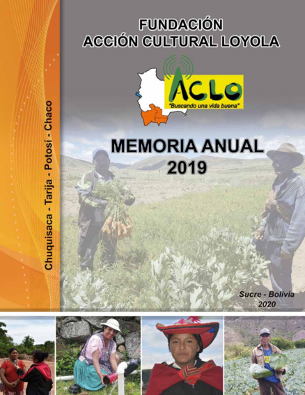 "Las acciones descritas corresponden al primer año del PEI 2019 - 2021, que pone énfasis en cambios en la vida de las personas con quienes hemos desarrollado diferentes acciones alineadas a los cinco desafíos. Al inicio se describe el contexto en el que se han desarrollado las acciones. Luego se anotan los resultados logrados con aporte de las cuatro oficinas regionales de ACLO, mismos que son organizados en dos áreas de intervención institucional. Por una parte, de los Equipos de Desarrollo Territorial y, por otra, de los Medios de Comunicación Social. El diálogo que se da al desarrollar las acciones de las dos áreas, genera una sinergia social que repercute en mayor efectividad en el logro de los resultados orientados a los cambios en las familias campesinas e indígenas y de las poblaciones urbanas populares de la Región Sur de Bolivia. Dichos cambios reflejan el compromiso y acción de hombres, mujeres y jóvenes de las organizaciones de los PIOC y las PUP. Por supuesto también fue importante el apoyo de las autoridades municipales. Al concluir la gestión, emergió un gobierno transitorio producto de los conflictos electorales de octubre y noviembre de 2019, esto nos advirtió que es tiempo de re-crear las democracias en el país en el marco de la justicia, la igualdad y la solidaridad; sobre todo de cara a los PIOC y PUP." (Presentación, página 5)