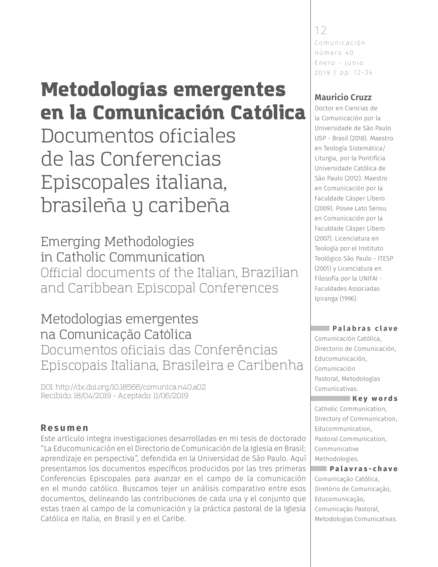 Metodologías emergentes en la comunicación católica: Documentos oficiales de las Conferencias Episcopales italiana, brasileña y caribeña