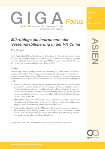 Mikroblogs als Instrumente der Systemstabilisierung in der VR China
