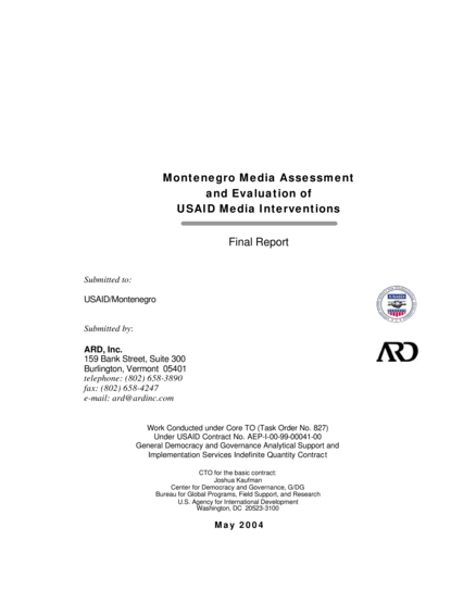 Montenegro Media Assessment and Evaluation of USAID Media Interventions: Final Report