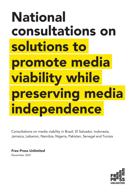 National Consultations on Solutions to Promote Media Viability While Preserving Media Independence: Consultations on Media Viability in Brazil, El Salvador, Indonesia, Jamaica, Lebanon, Namibia, Nigeria, Pakistan, Senegal and Tunisia