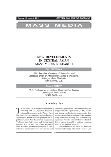 Central Asia and the Caucasus, volume 12, issue 4 (2011), pp. 128-143