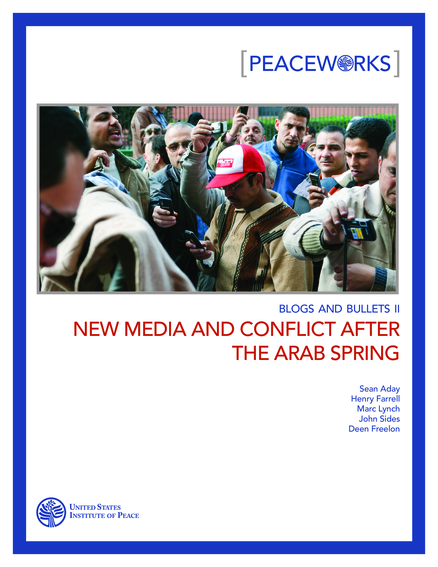"An extraordinary wave of popular protest swept the Arab world in 2011. Massive popular mobilization brought down long-ruling leaders in Tunisia and Egypt, helped spark bloody struggles in Bahrain, Libya, Syria, and Yemen, and fundamentally reshaped the nature of politics in the region. New media - at least that which uses bit.ly linkages - did not appear to play a significant role in either in-country collective action or regional diffusion during this period. This lack of impact does not mean that social media - or digital media generally - were unimportant. Nor does it preclude the possibility that other new media technologies were significant in these contexts, or even that different Twitter or link data would show different results. But it does mean that at least in terms of media that use bit.ly links (especially Twitter), data do not provide strong support for claims of significant new media impact on Arab Spring political protests. New media outlets that use bit.ly are more likely to spread information outside the region than inside it, acting like a megaphone more than a rallying cry. This dissemination could be significant if it led to a boomerang effect that brought international pressure to bear on autocratic regimes, or helped reduce a regimefs tendency to crack down violently on protests. It is increasingly difficult to separate new media from old media. In the Arab Spring, the two reinforced each other. New media must be understood as part of a wider information arena in which new and old media form complex interrelationships. Of the four major Arab Spring protests analyzed - Tunisia, Egypt, Libya, and Bahrain - large differences were found across the four in the amount of information consumed via social media. The events in Egypt and in Libya (#jan25 and #feb17, respectively) garnered many more clicks on a much larger number of URLs than those in Tunisia and Bahrain." (Summary, page 3)
