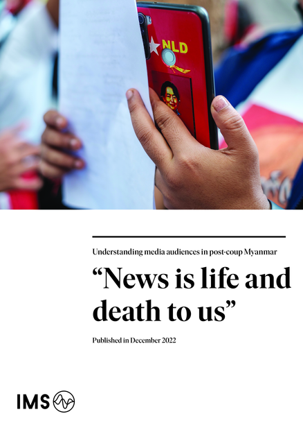 "This publication presents the findings from an audience study carried out by International Media Support (IMS) and Nyan Corridor in June-August 2022. The report provides insights into the media habits of the population of Myanmar following the 2021-military coup as well as people’s news concepts, trust levels and media literacy levels. Due to difficulties with data collection in the current situation, the conclusions of the study apply mainly to the subset of the population that can be said to be in opposition of the military coup. The study found that the 2021 military coup has significantly altered the media environment of the country, causing audiences to change their habits and understandings of both media and news. The military’s crackdown on independent media has made it far more difficult for people to access independent news and information and many struggle to navigate in the polarised society that is also reflected in the media landscape. The conflict is on everyone’s mind and people actively seek out information to stay updated and make informed decisions for themselves and their families. Mainstream media outlets such as Mizzima and DVB are seen as trusted sources of information where content is produced based on ethical principles, but they are unfortunately not always able of providing needed information from a hyperlocal level. In these cases, audiences rely on local media or online community media (eg. Facebook groups for specific local areas) for information. There is no doubt that social media plays a vital role in Myanmar. Compared to the findings from an audience research study, IMS conducted in 2018, where television was the preferred medium for news and information, most Burmese today rely on social media. Facebook is by far the most used platform, but people are beginning to be more vary as to how they use Facebook and leave traces of their whereabouts and political opinions." (Executive summary, page 4)