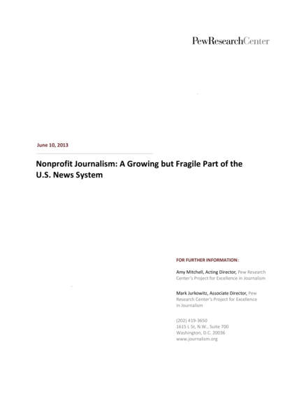 Nonprofit Journalism: A Growing But Fragile Part of the U.S. News System