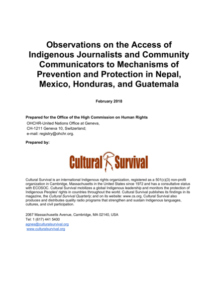Observations on the Access of Indigenous Journalists and Community Communicators to Mechanisms of Prevention and Protection in Nepal, Mexico, Honduras, and Guatemala