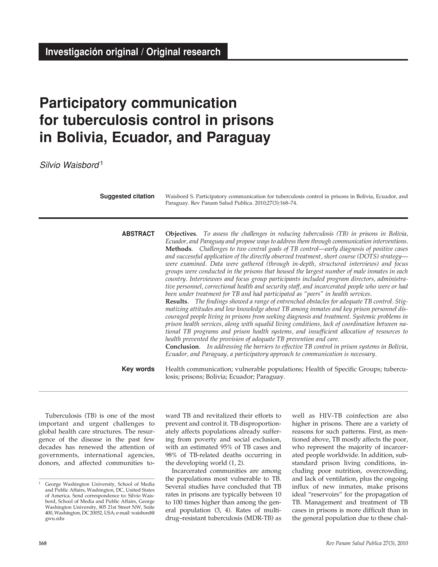 Participatory Communication for Tuberculosis Control in Prisons in Bolivia, Ecuador, and Paraguay