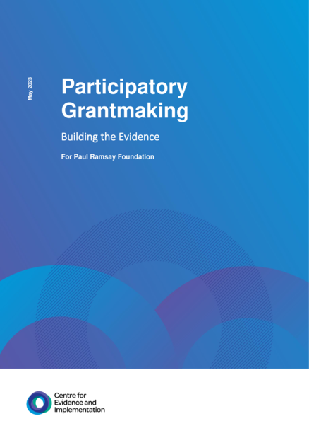 "This report explores the state of evidence in participatory grantmaking (PGM). It investigates the benefits and challenges of PGM and provides recommendations for the sector on advancing practice and understanding in this emerging area." (Page 4)