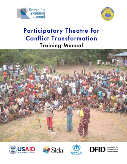 "Participatory theatre is an approach in which the actors interact with the public. Throughout the event, the public participates to adapt, change or correct a situation, an attitude or a behaviour that is developed during the show. The NGO “Search for Common Ground” combined forum theatre techniques initially developed by Augusto Boal in Brazil in the 1960s with its own approach aimed at seeking collaborative rather than adversarial solutions to conflict in war-torn Eastern Democratic Republic of Congo. This training manual first gives a brief introduction to participatory theatre and conflict transformation in general. Then, based on the experiences of over 600 performances, it presents practical guidelines for developing a participatory theatre process. They include: information collection; compiling information; scene development; character development; preparation of the performance location; interaction with spectators; and the skills of the conductor. Also some risks of participatory theatre are very briefly touched upon. This publication may not be sufficient to be put in practice by persons without theatre experience, as it does for example not offer practical advise on acting itself. Nevertheless, this is a very helpful introduction to the underlying principles of participatory theatre." (CAMECO Update 1-2010)