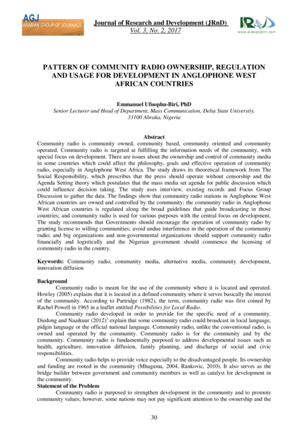 Pattern of Community Radio Ownership, Regulation and Usage for Development in Anglophone West African Countries