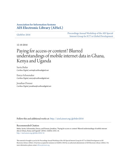 Paying for Access or Content? Blurred Understandings of Mobile Internet Data in Ghana, Kenya and Uganda