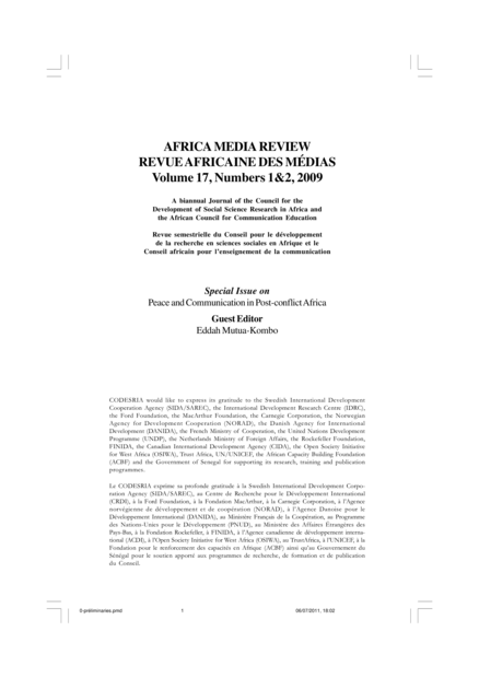 Africa Media Review, volume 17, issue 1-2 (2009), pp. 1-126