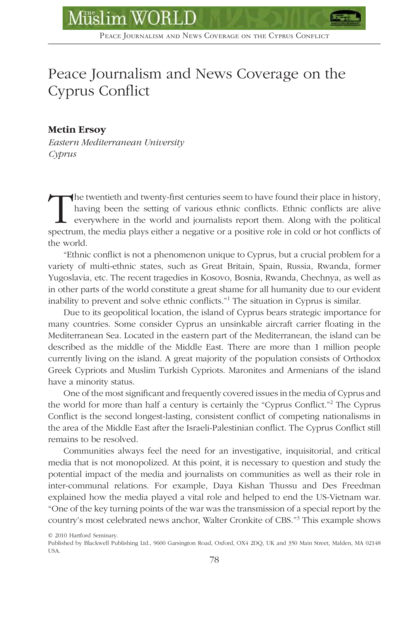 Peace Journalism and News Coverage on the Cyprus Conflict