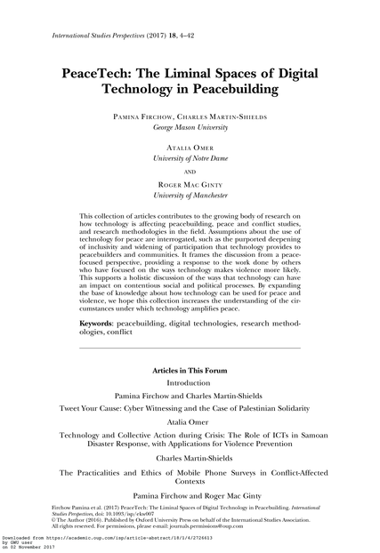 PeaceTech: The Liminal Spaces of Digital Technology in Peacebuilding