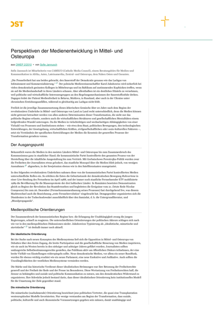 Perspektiven der Medienentwicklung in Mittel- und Osteuropa