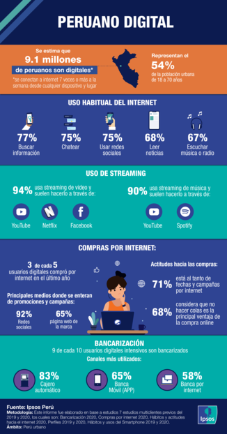 "Se estima que 9.1 millones de peruanos son digitales. Representan el 54% de la población urbana de 18 a 70 años." (Página 1)
