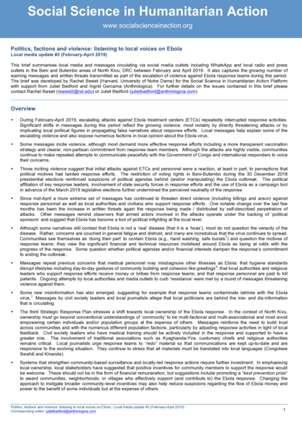 Politics, Factions and Violence: Listening to Local Voices on Ebola