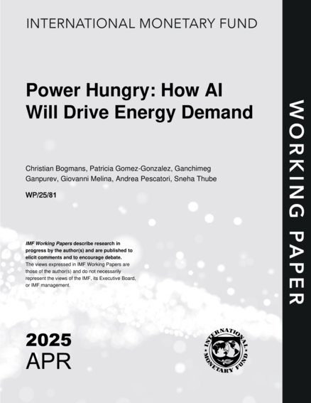 "The development and deployment of large language models like ChatGPT across the world requires expanding data centers that consume vast amounts of electricity. Using descriptive statistics and a multi-country computable general equilibrium model (IMF-ENV), we examine how AI-driven data center growth affects electricity consumption, electricity prices, and carbon emissions. Our analysis of national accounts reveals AI-producing sectors in the U.S. have grown nearly triple the rate of the private non-farm business sector, with firm-level evidence showing electricity costs for vertically integrated AI companies nearly doubled between 2019-2023. Simulating AI scenarios in the IMF-ENV model based on projected data center power consumption up to 2030, we find the AI boom will cause manageable but varying increases in energy prices and emissions depending on policies and infrastructure constraints. Under scenarios with constrained growth in renewable energy capacity and limited expansion of transmission infrastructure, U.S. electricity prices could increase by 8.6%, while U.S. and global carbon emissions would rise by 5.5% and 1.2% respectively under current policies. Our findings highlight the importance of aligning energy policies with AI development to support this technological revolution, while mitigating environmental impacts." (Abstract)